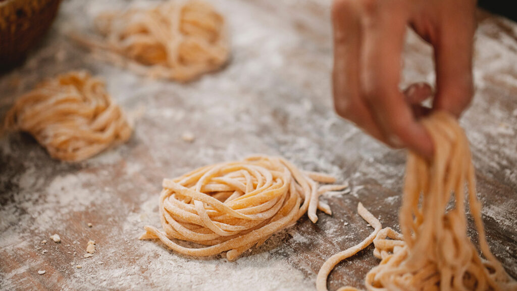 Förrätter, varmrätter, pasta, sallader, crescia, pizza och desserter.